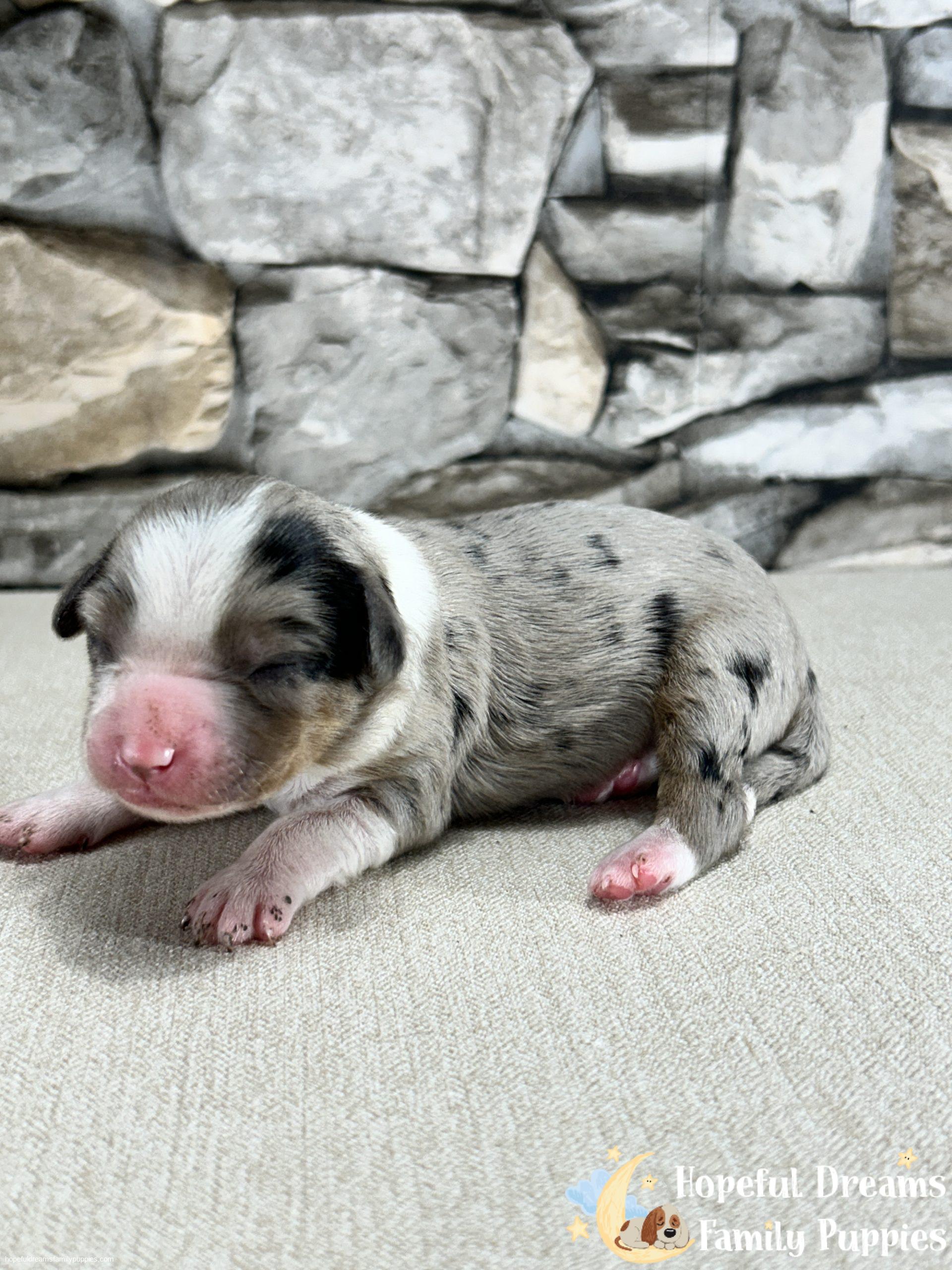We’re really excited to introduce you to Flower! She is an adorable Merle colored Mini Aussilier puppy who was recently born. At this tender age, she is already capturing hearts with her tiny paws and beautiful color. As she grows, she is sure to bring endless joy and companionship to those around her. 🐾💖