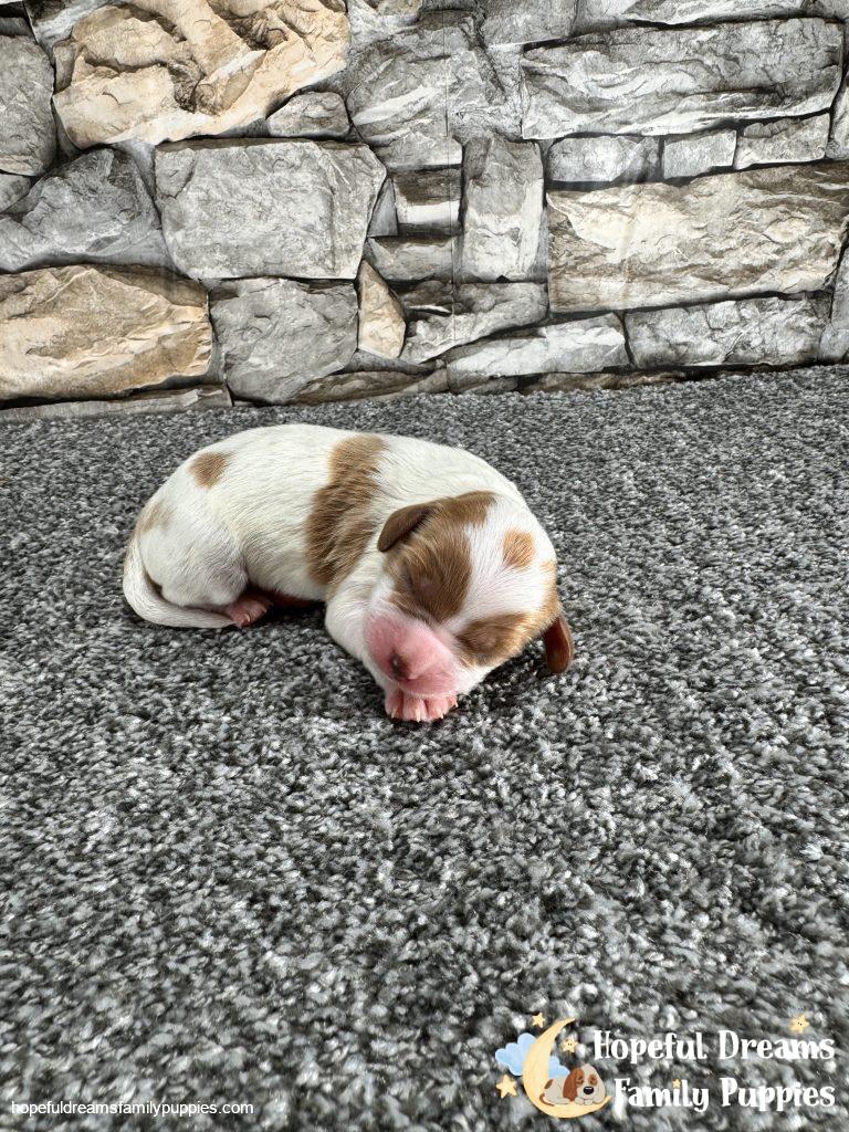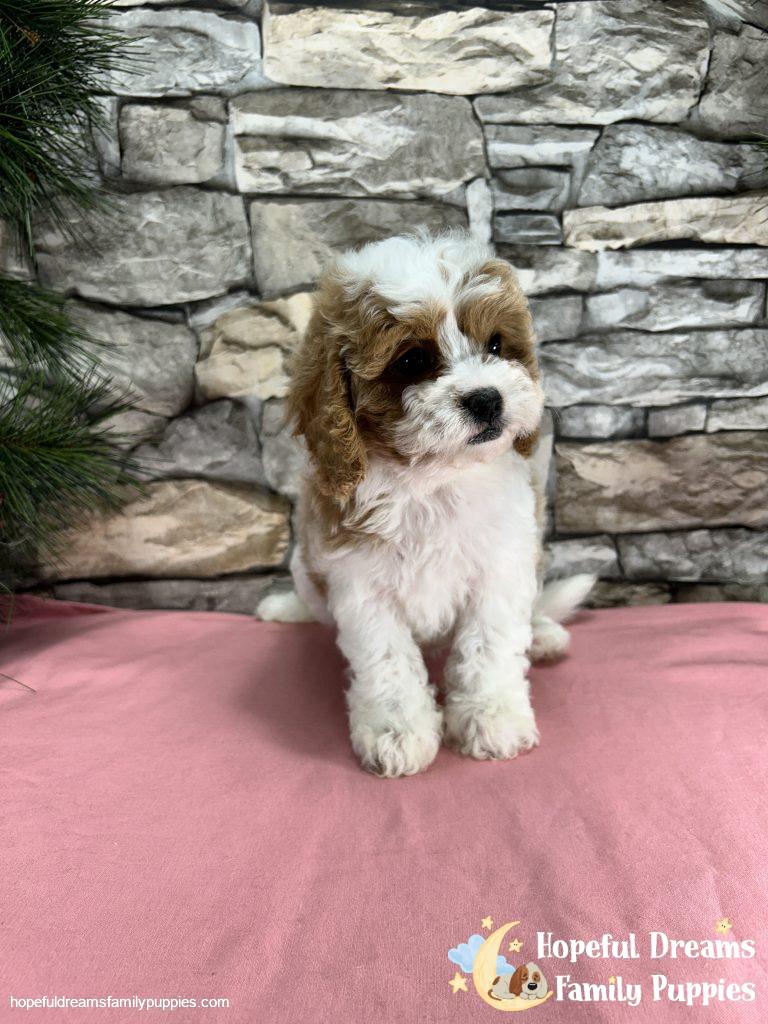 The Cavapoo is a designer breed dog — a cross between the Cavalier King Charles Spaniel and Poodle dog breeds. Outgoing, playful, and curious, these pups inherit some of the best traits from both of their parents. We offer Cavapoo puppies for sale with delivery in the US and Canada and pickup available in New York.