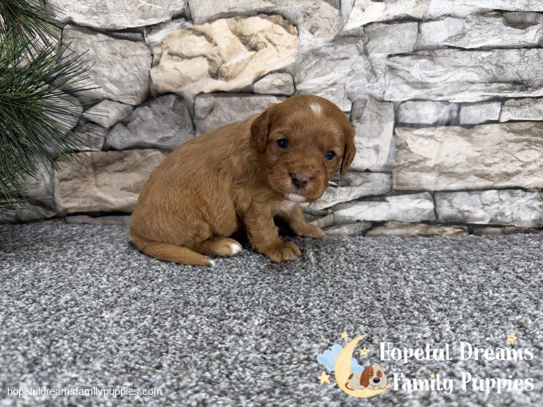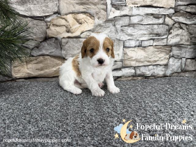 Mr. Oscar is a sweet and affectionate Cavapoo pup, made even more special by the adorable heart-shaped marking on his head. He is microchipped, will be up to date on vaccinations, and comes with a starter kit to help him feel comfortable in his new home.