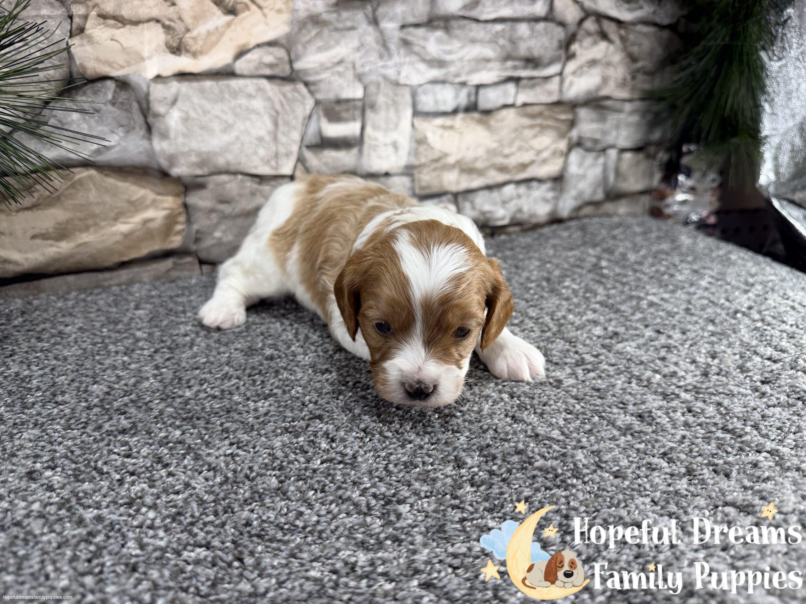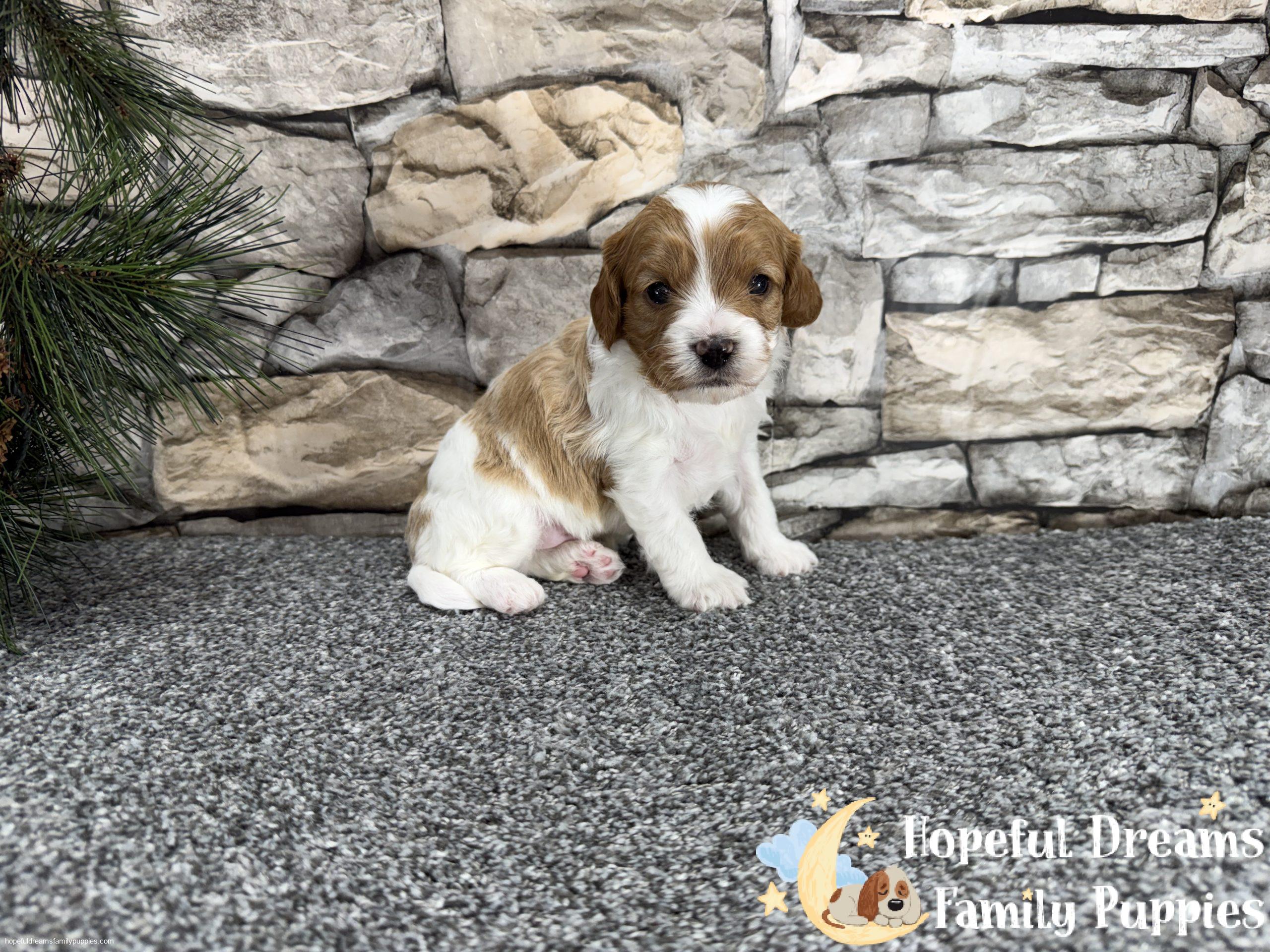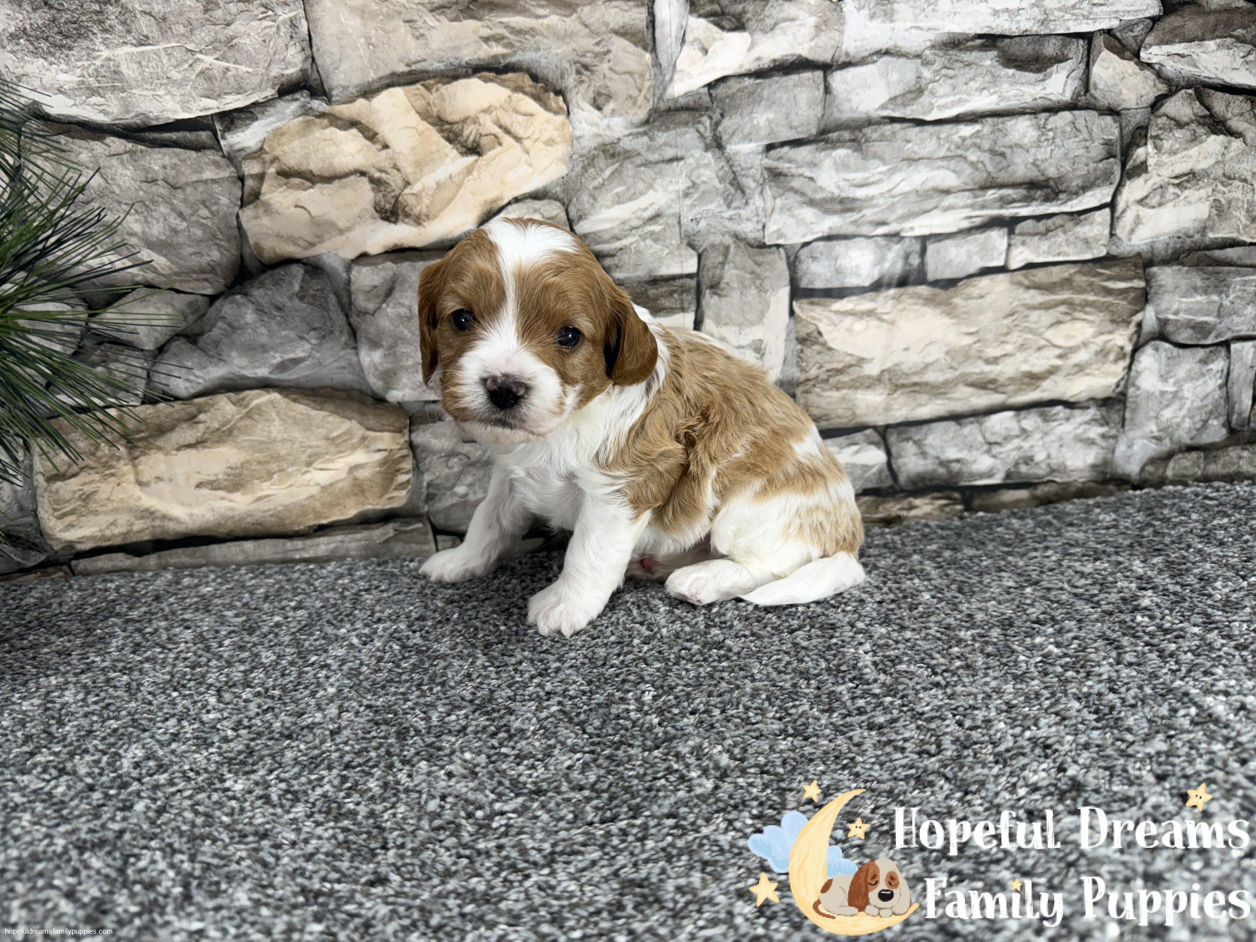 Mr. Oscar is a sweet and affectionate Cavapoo pup, made even more special by the adorable heart-shaped marking on his head. He is microchipped, will be up to date on vaccinations, and comes with a starter kit to help him feel comfortable in his new home.