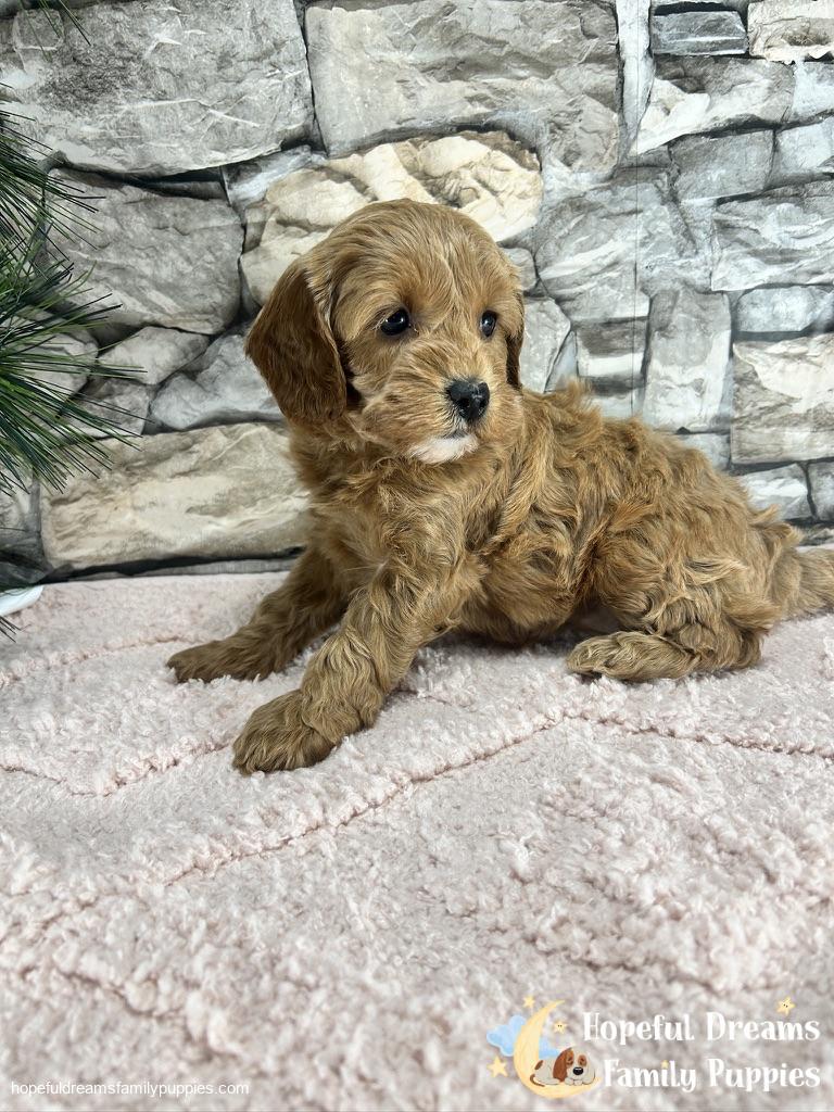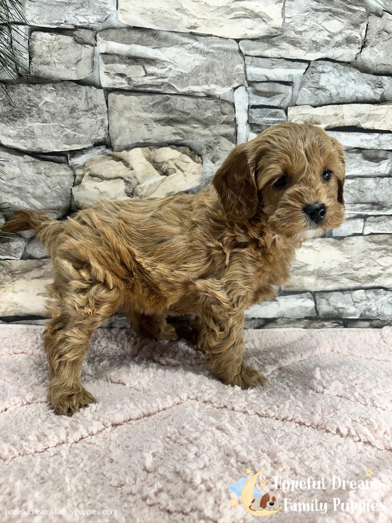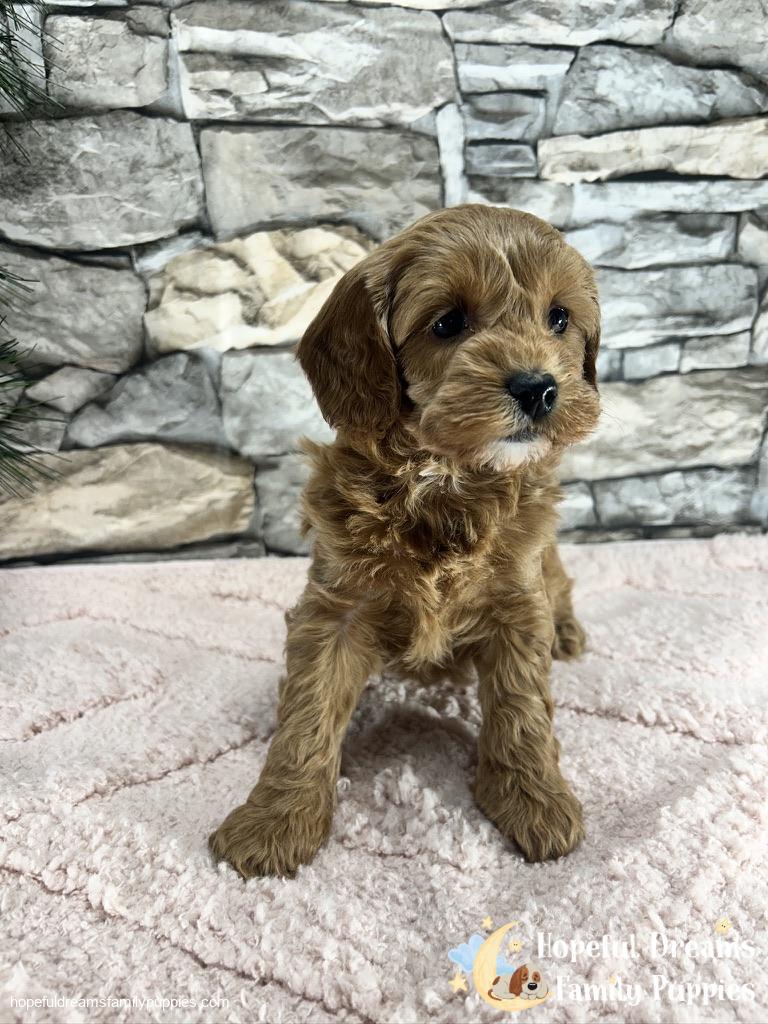 A Cavapoo is a delightful crossbreed between a Cavalier King Charles Spaniel and a Mini Poodle. This hybrid dog is known for its intelligence, hypoallergenic coat, and friendly temperament. Cockapoos are highly sociable and thrive on interaction, making them excellent companions for families and individuals alike. These dogs are known for their playful and affectionate nature, making them great with children and other pets. They are also highly trainable due to their intelligence and eagerness to please. Overall, Cavapoos are a wonderful choice for those looking for a loving, intelligent, and low-shedding pet.