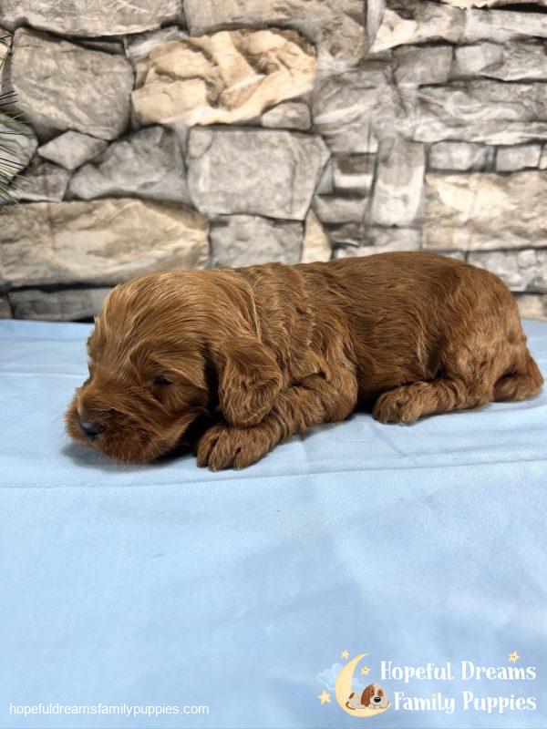 Mr. Truffle is a Cockapoo puppy who dreams of a life as a couch potato. He imagines spending his days lounging on the couch and enjoying treats between his naps. Mr. Truffle will grow to love you deeply and become the most faithful member of your family. His gentle nature and unwavering loyalty will make him a cherished companion.